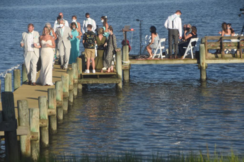 We’ve attended weddings of their three children nearby, two on the island itself including Ellie’s niece Maggie earlier this month on the “beverage dock” in Little Oyster Bay behind Trish and Bill’s place.