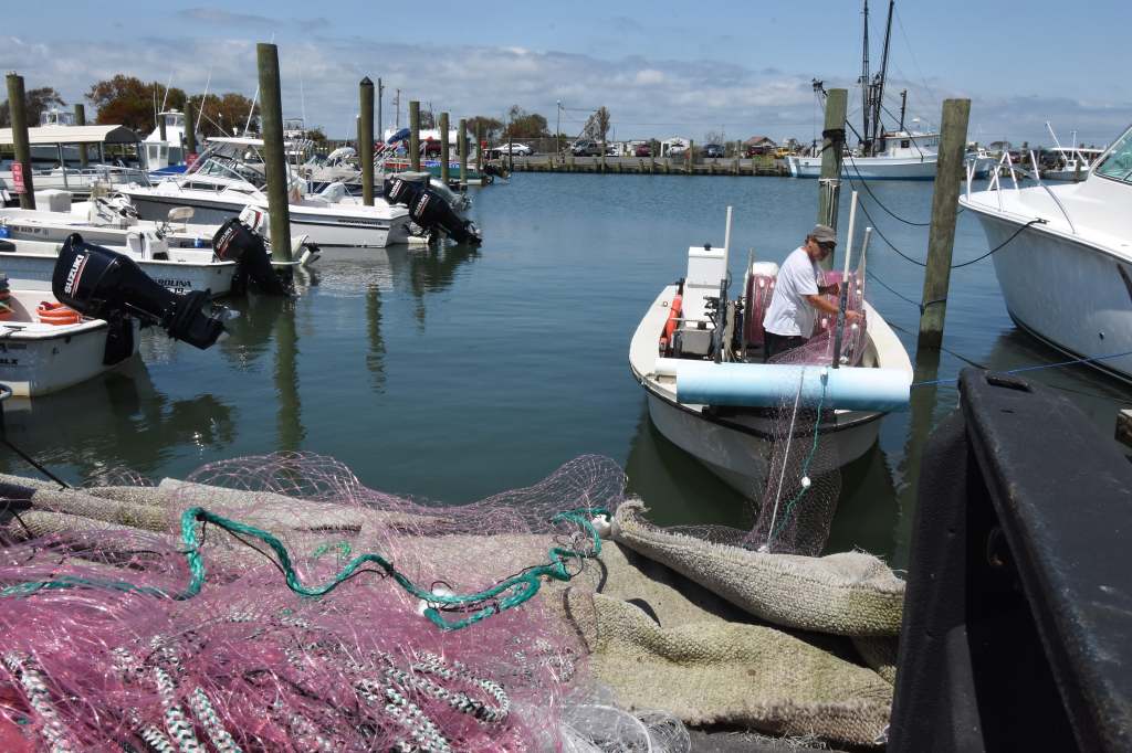 Once Lee was in Chincoteague when we also were. He showed us around and took us to the fishing harbor to meet his cousin Ernie who built his boat, the 40-foot Barbara B, in his backyard. The Barbara B replaces one that sank under him. He swam to a buoy and clung tight in a gale so strong that he – raised on the water and operator of sure sea legs – vomited nonstop for hours until rescued by the Coast Guard. One season, he did so well by selling sharks’ fins to Manhattan restaurants for soup that he bought his wife (the Barbara B) a Jaguar sedan on eBay. Lee is 6’3″ and not thin, but Ernie is 6’8″ and burly and hug-swung Lee around like a stuffed toy.