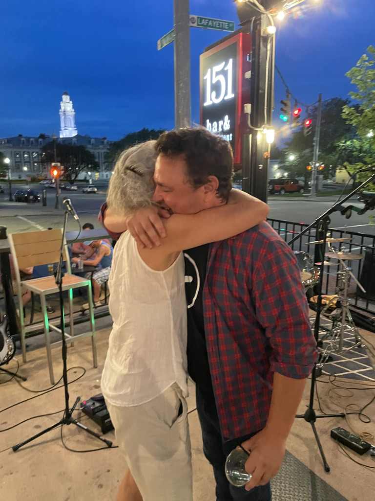 Apart from the refreshed and refreshing novelty of simply being with other humans, longtime friends and strangers alike, the main delight of the evening was watching Dave – remember, we’ve known him since he was three – enjoy making music with his friends, as we listened with our friends.