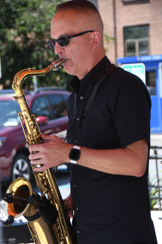 Extra-fine weather and the promise of a rare set by super-in-demand saxophonist Brian Patneaude’s Quintet invited everybody into a shared great mood Thursday at Jazz on Jay. Maybe especially Patneaude himself. Introducing his band after their first song, he good-naturedly name-checked the Ryder truck whose loud reverse-alarm beeping failed to interrupt the music.