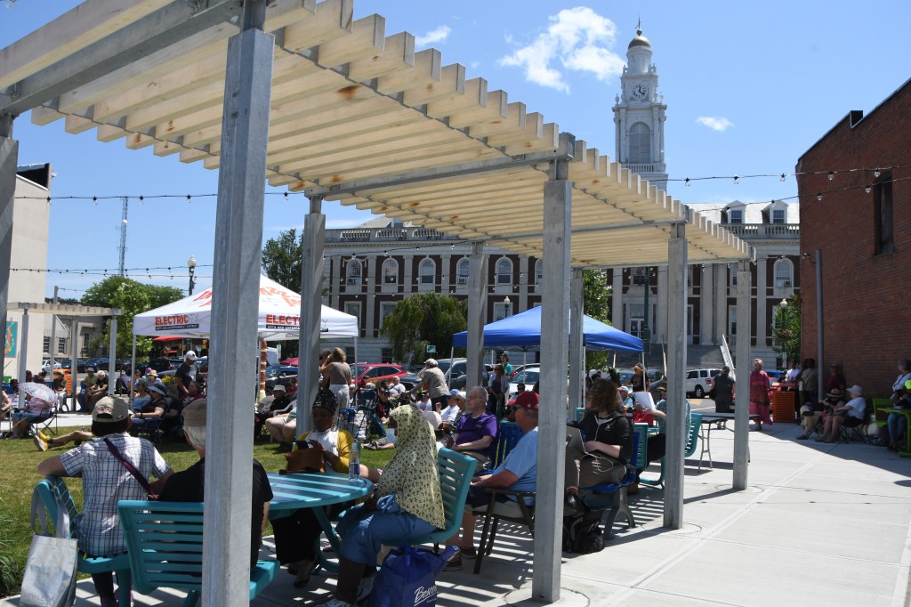 Fans filed into Jay Square, toting chairs, seeking islands of shade or unfurling their own.