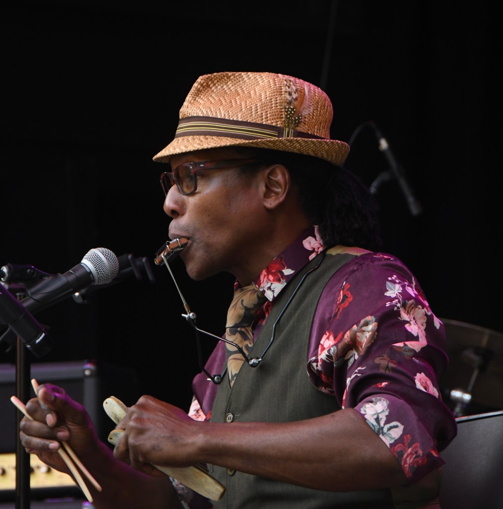 Lanaea Brice, right, introduces Joe Barna’s Sketches of Influence, from left; David Gleason, keyboard; Jason Emmond, bass; Keith Pray, alto saxophone; Joe Barna, drums and composer.