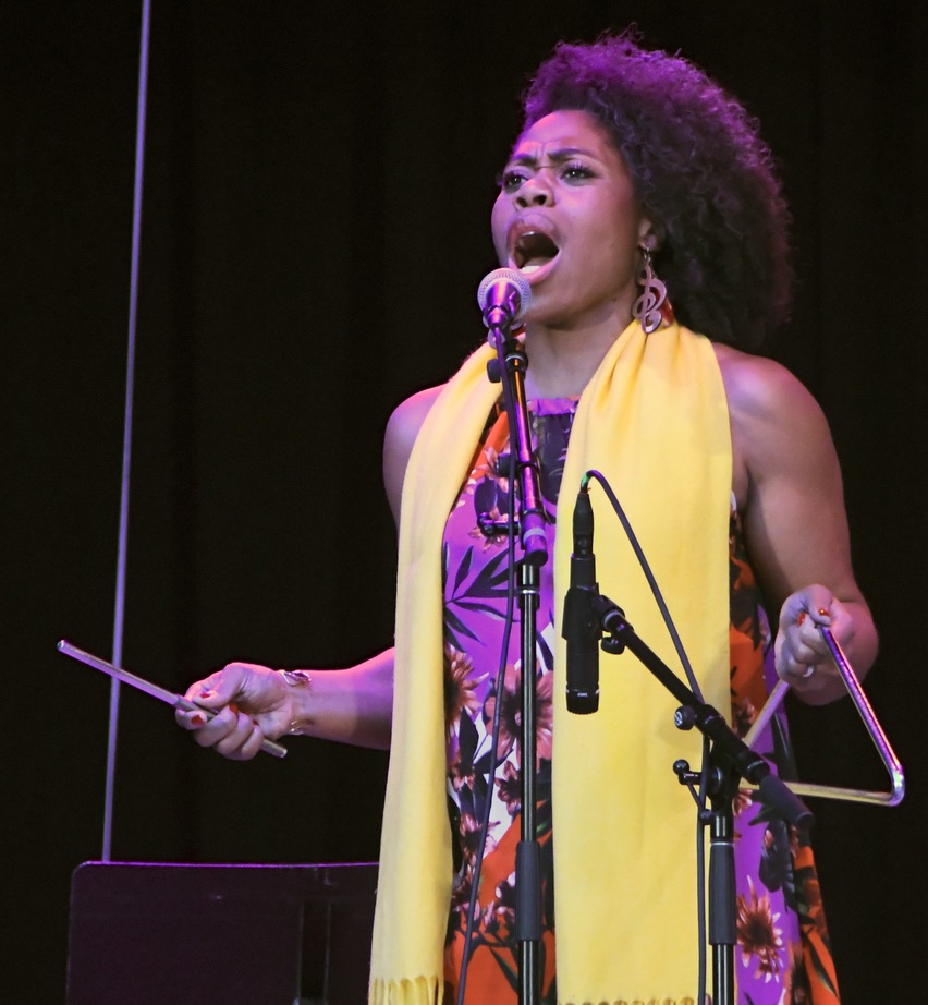 More than the sum of its parts, accordionist Hostins’ trio with zabumba (bass drum) player Davi Vieira and triangle player and singer(!) Chrystal E. Williams usually had five things going on at once. He played two rhythms on accordion, Vieira played different beats on his drum with a mallet up top and a thin stick below while Williams’s metal triangle completed a complex rhythmic celebration. They base their music in Brazilian forro, dominant beat of the four that Music Haven chief Mona Golub memorized to list accurately in her introduction.
