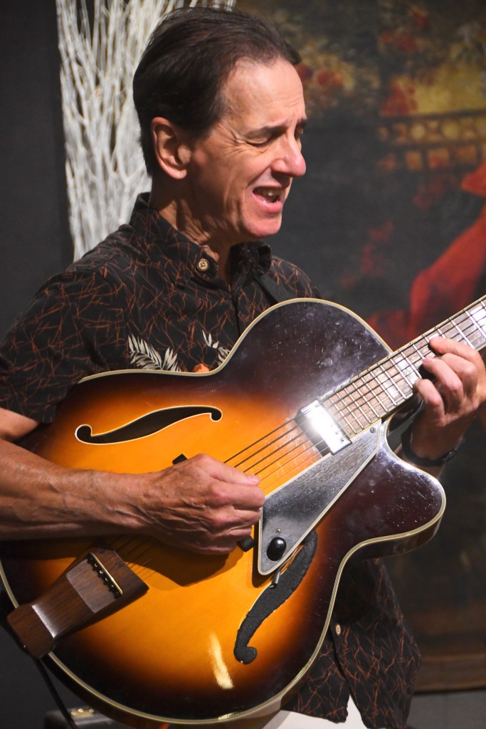He launched “All of Me” in an exposed solo and the tune proved the most interactive of the set. Sorrentino caught the energy of the applause and smiled wide, then Diefendorf rode the crowd’s claps into a spirited riff eruption. He stayed hot in “Besame Mucho,” although Kendall’s bass solo matched Diefedorf’s guitar explorations. Diefendorf then claimed praise for skipping the cha-cha-cha ending that many players (he included himself) append to Latin numbers