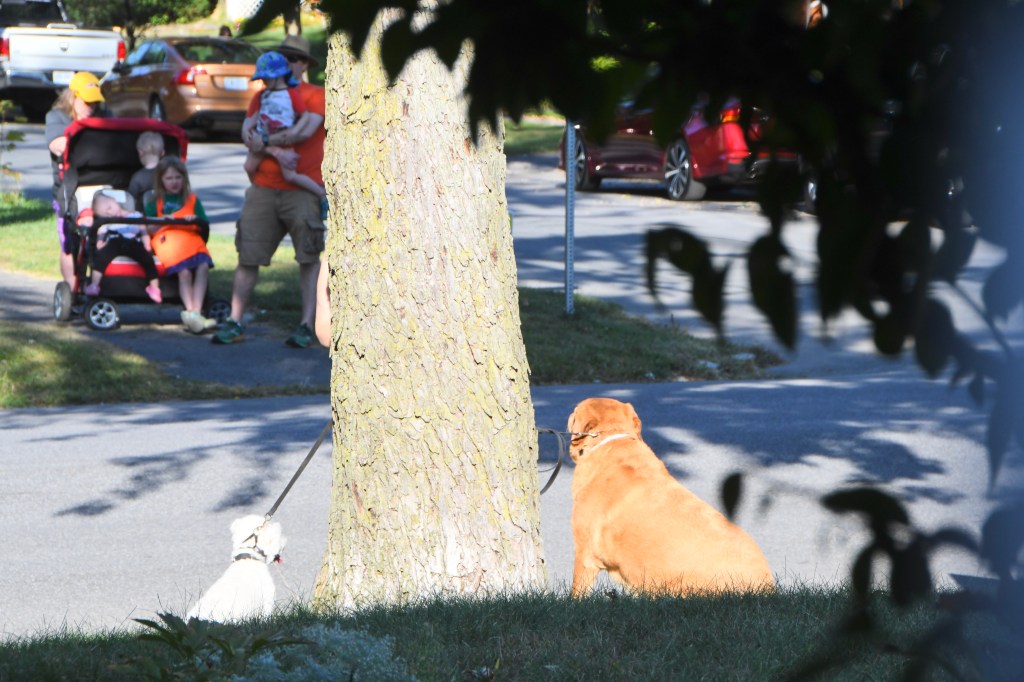 Street scene: Dogs in charge, Rugby and Ardsley Rds.