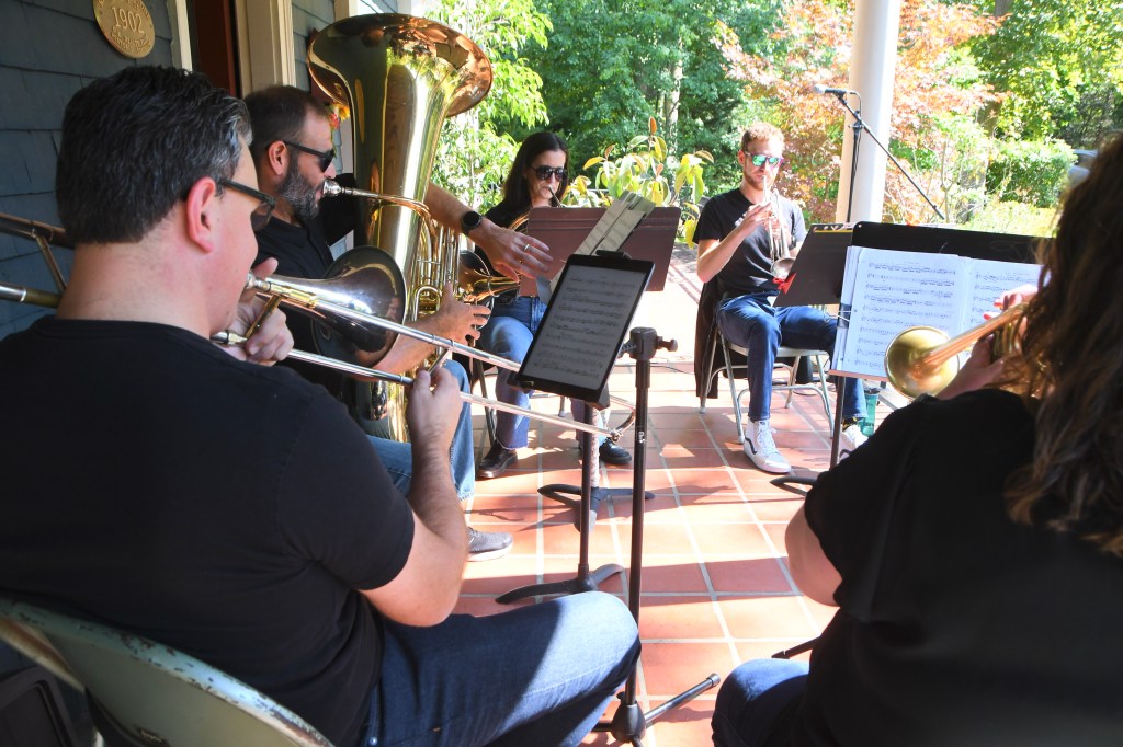 Walking east on Rugby to the corner with Ardsley, I found the Dominant 5 Brass Quintet enjoying their way through the Beatles’ “When I’m 64,” then a medley of NPR themes and jingles – like a classical recital with conservatory chops and a sense of humor.