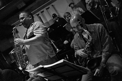 Keith Pray’s Big Soul Ensemble – Pray, with arm raised here, led his big band in monthly shows at the Van Dyck. Rudy Lu photo