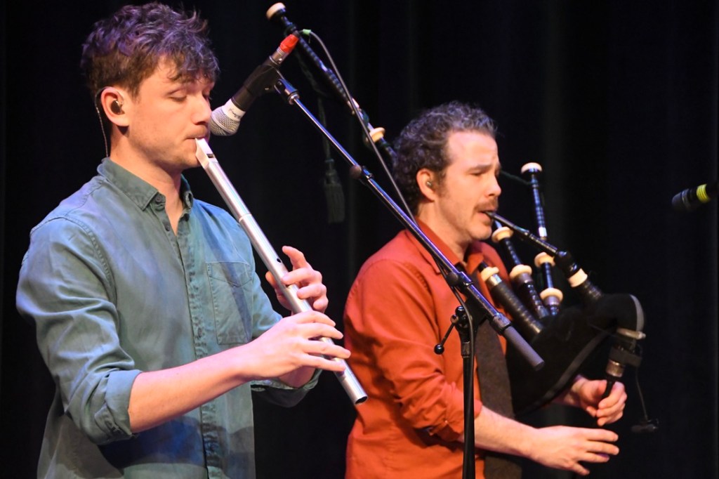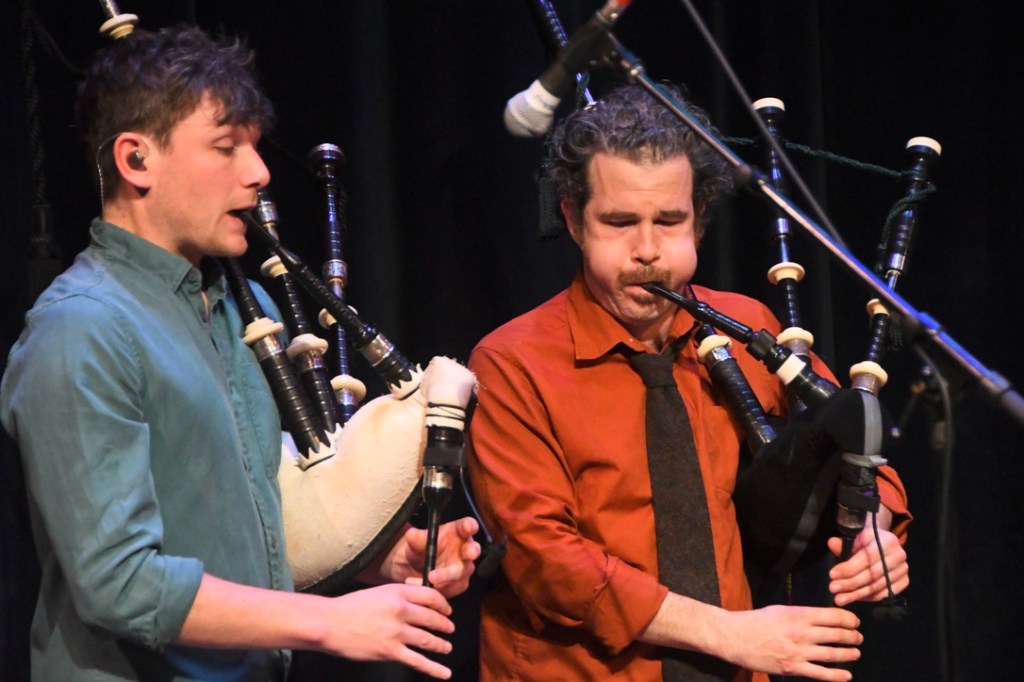 He also put the audience to work late in their 80-minute set, explaining how bagpipers learn new tunes by singing them and enlisting the audience to do this: “You’re the choir,” he said, teaching/assigning a complex pattern.