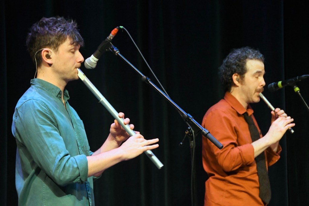 To start, they medleyed “Farsund” about a Norwegian village (reminding us how close are the British Isles to Scandinavia) into “Brog to the Future” from their new (seventh) “Fas” album. Segues moved smooth as their playing. The stately mood of their twin whistles jumped strong into jaunty bagpipe riffing in “Birds of Passage.” Moynihan proved a more than capable substitute for Henderson, singing “Across the Western Ocean” as MacCrimmon switched to bouzouki and sang harmony to plaintive, touching effect, mixing hope and melancholy.