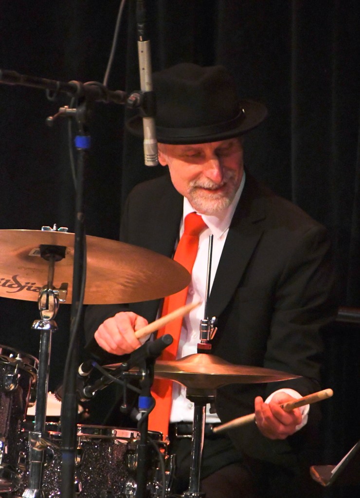 The horn players got out to play: especially Patneaude in his zippy romp through the Coltrane-esque“Sleigh Ride,” Pasin in his arraignment of “We Three Kings” and an elegant muted solo in “Winter Wonderland” and O’Shea in the jaunty cha-cha “Feliz Navidad.” And they got to close the show by second-line parading off-stage at the end.