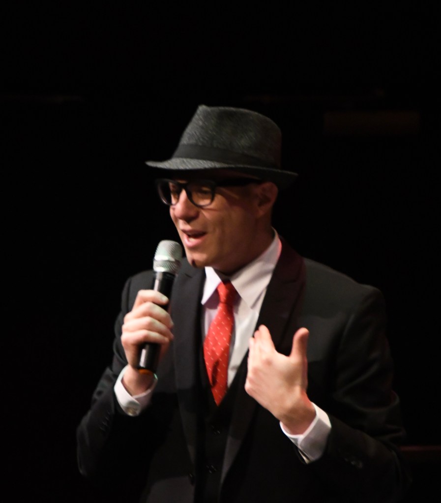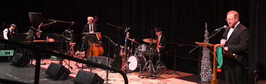 The start felt cozy: a radio-style chat from McCord then “Christmas Is Coming” and “Skating” – both from Guaraldi’s “Peanuts” songbook and both featuring the Art D’Echo Trio, Gleason’s nucleus for the revue with longtime bandmates Mike Lawrence, bass; and Pete Sweeney, drums.
