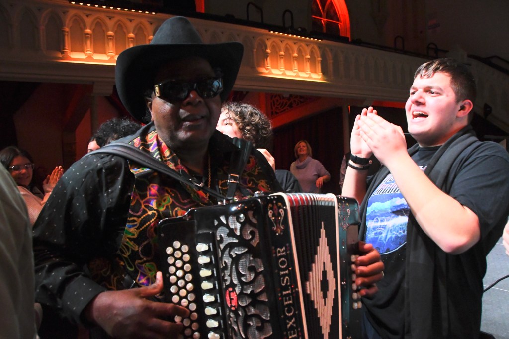 Three conga lines blurred into one as fans formed an unbroken loop through Universal Preservation Hall Friday night in the joyful geometry of zydeco on the loose.