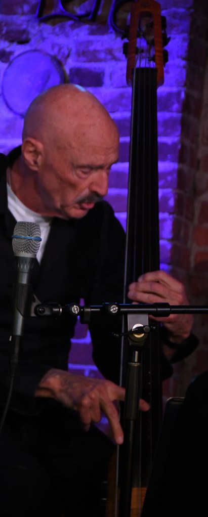 In “another pretty one” (like “Gymnopedie”) as Pete promised, the sweetly tuneful original “Fade to Blue” rode a cozy Pete piano vamp that LaBarbara used as launching pad for bold explorations. Then they punched up the energy in “Bringing It Down to the Bass,” alternatively “Bringing It Down to Laid-Back Lee,” echo of an earlier title for this original. They made maximum fun of this cheerfully self-confident freeway funk number.
