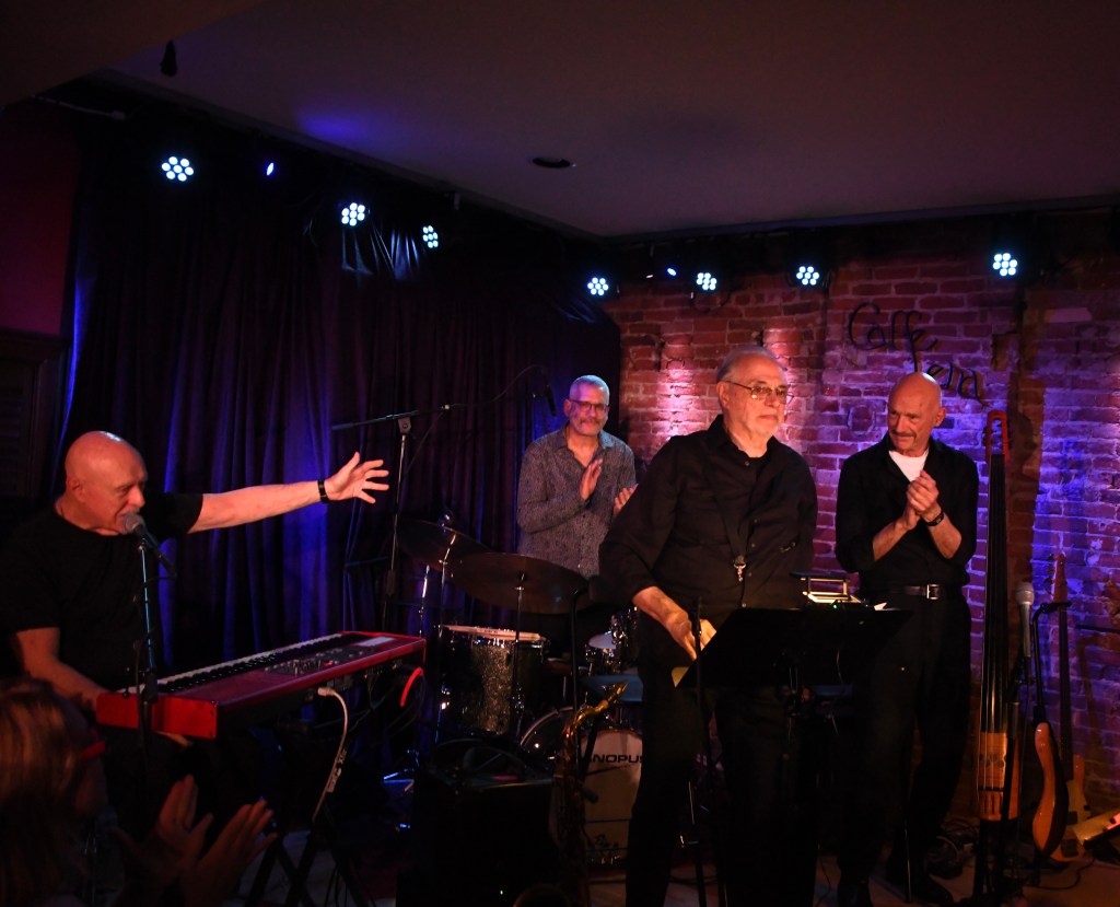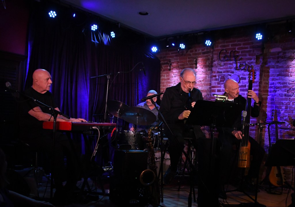 The quartet – keyboardist Pete Levin, bassist-brother Tony, tenor saxophonist-EWI player Pat LaBarbara and drummer Jeff Siegel – delighted the Caffe full of musicians and mostly-boomer fans, often re-inventing “covers.”