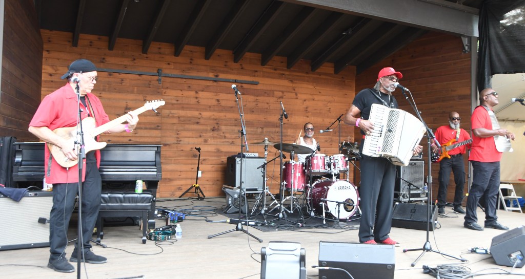 Per tradition at the Wood, Louisiana accordionist-singer C.J. Chenier closed with dance music that got the crowd up and happy. Their Zydeco zip had substance, though; they made dance-y music with veteran skill and conviction. Like others Saturday, they medleyed songs in jaunty jigsaw fluency, stacking “Bring It On Home To Me” with “It’s Alright” and “I Got a Woman.”