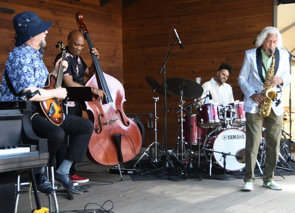 Leading off on the Charles R. Wood Jazz Discovery Stage (hereafter “the Wood”), the eight-piece Combo (the festival’s only local act) members each honored a personal mentor or inspiration.