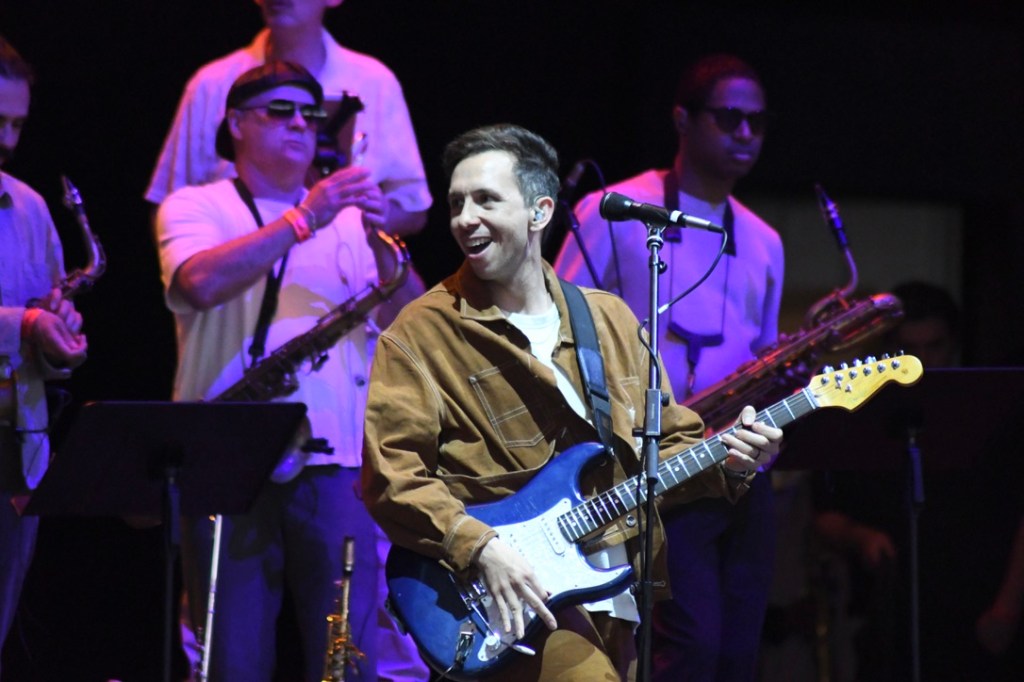 As with Lettuce on Saturday, Cory Wong played Sunday’s funk slot for fun, force and fire. The guitarist-leader seldom soloed, and didn’t have to; his big band blasted repeating short riffs that built high energy grooves with a sax break here, a keyboard thing over there, relentless drums and bass under everything. As with Lettuce, songs flowed Into songs.