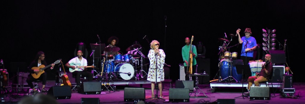 Cassandra Wilson celebrated her 30-year-old “New Moon Daughter” album, harmonica ace Gregoire Maret guesting with her guitar-dominated band. While “The Last Train to Clarksville” and “A Little Warm Death” cruised mid-tempo, Wilson’s superbly rich voice sounded most persuasive on downbeat tunes “Love Is Blindness,” “I’m So Lonesome I Could Cry,” with a tasty Charlie Burnham violin break, and “Death Letter.”