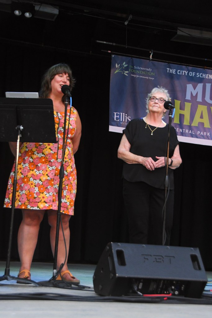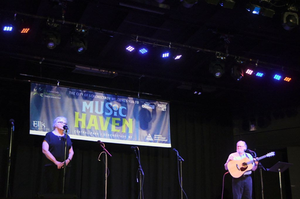 Music Haven maestro Mona Golub briefly introduced the evening, which otherwise belonged to WAMC. The regional NPR station’s On the Road chief Peter Hughes, producer and sometime morning host Sarah LaDuke and Fischer herself ran the show whose traditional Music Haven intermission raffle benefited the station. They and some performers noted NPR and affiliates are under threat, losing federal support. Many urged support of the station and its work, and the music they played demonstrated its importance as a community builder and catalyst while Music Haven and Golub earned major love and respect for hosting it.