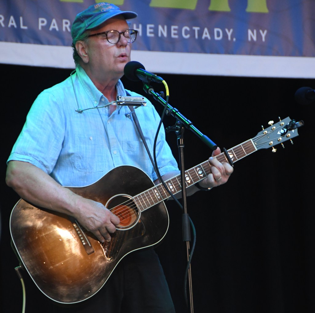 After intermission and the raffle of folk-related prizes, Dan Berggren first saluted the forever wild Adirondacks and the people who appreciate and nurture rather than exploit this delicate/rugged land and its creatures. “Whippoorwill Blues” lamented threats to that place and that ethos before extolling noble hard work in “Big Beams.”