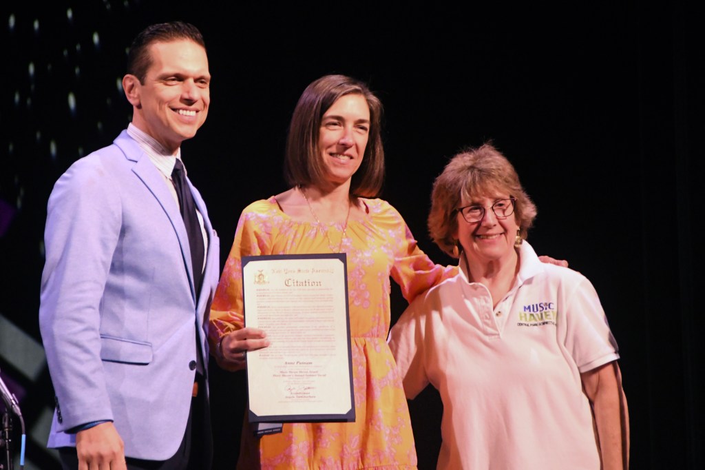 The pre-concert Music Haven Summer Social, above, a paid admission meet-up, with catering, filled the adjacent Key Hall, with Schenectady Mayor Gary McCarthy and NYS Senator Jim Tedisco presenting proclamations to both Music Haven Producing Artistic Director Mona Golub in honor of the free concert program’s 35th season and CEO Anne Putnam of Fenimore Asset Management, honored as Music Maven of the Year for her volunteer efforts and other support for Music Haven.