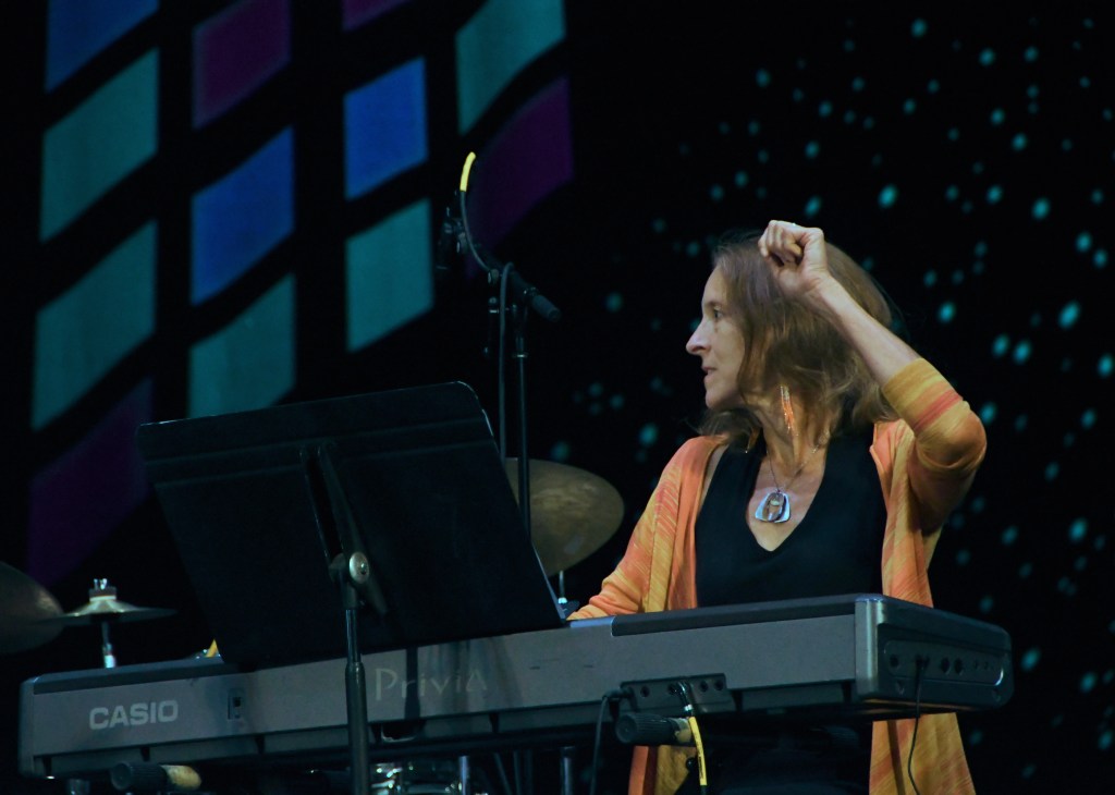 Tierra returned to sing their closer, “Eclesiastes,” about gratefully enjoying moments with those we love, even in tough times. Built on a complex riff, this was both big, bustling groove and solo showcase, especially by Castaneda who launched it with a churning ostinato then soloed the thing out past the Milky Way. It subsided into a cozy bridge before exploding again, harp, harmonica and voice just soaring, dramatic.