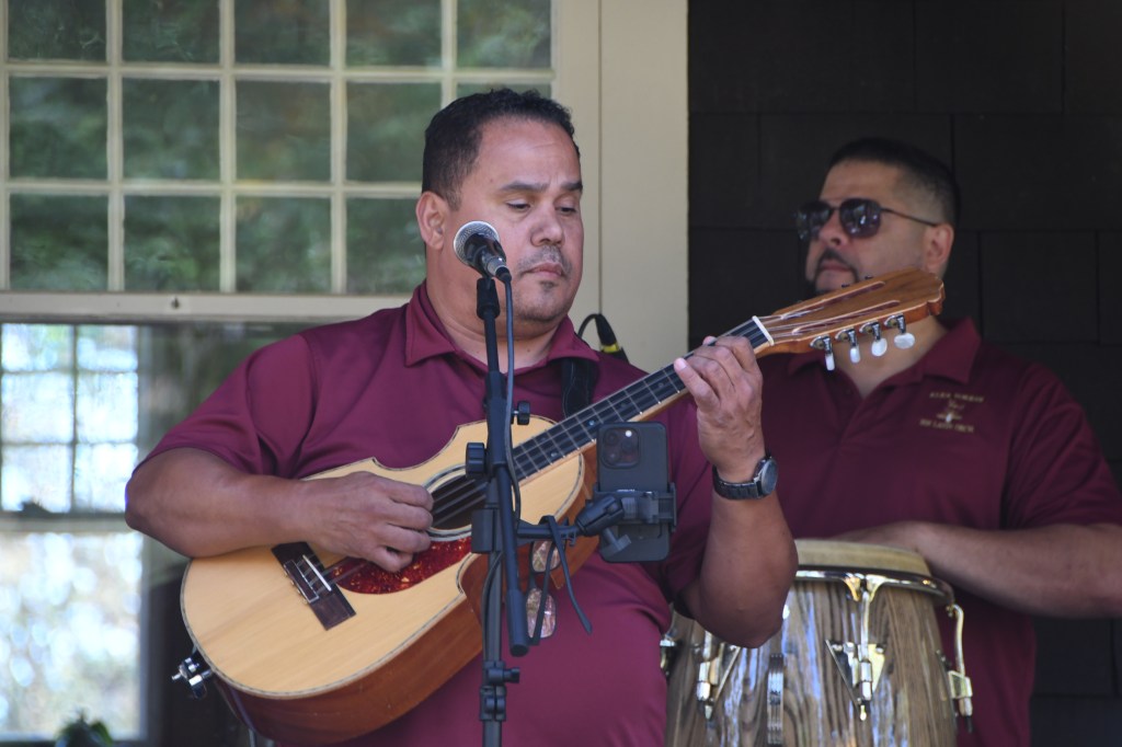 A bit before noon, the Backyard Brass, one of three brass ensembles, played classy tunes on an Avon Rd. side porch. Formed as a COVID-era hobby band, they’ve outlasted the plague through happy persistence, aiming their five trumpets Saturday at a somewhat rocky “Masterpiece Theater” theme to start. They played smoother in the peppy syncopated “America” from “West Side Story,” then a mellow “Shenandoah” as the audience grew.