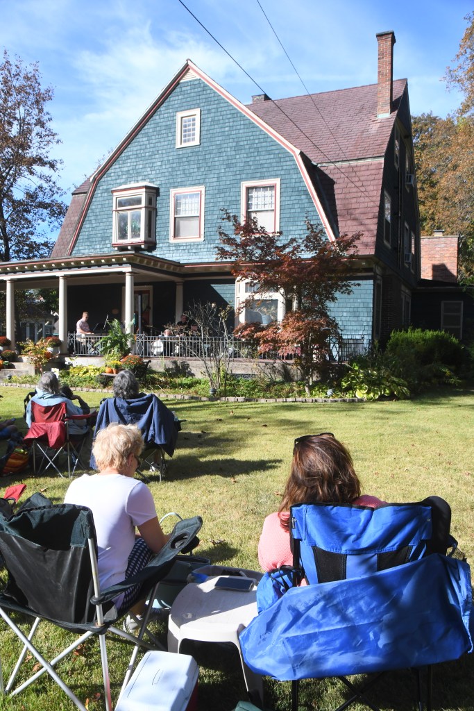 And, oh yeah – meanwhile, Union football won their first game of the season just half a block west of the Douglas Rd. porch-stage. There, hosts Barbara and Tony opened their home – bathroom, drinks and snacks – to the players. And another host, away for the weekend, had friends open her home and porch to players and fans.