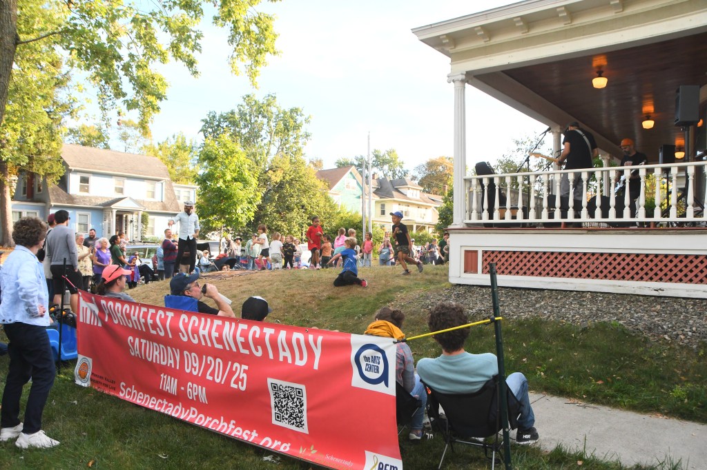 Rock trio Nice Hockey wrote their “City of My Dreams” about Montreal, but Saturday those words fit a north-side Schenectady neighborhood in and around its historic GE Plot. There seven porches – well, six plus a church – hosted 14 musical acts in the third annual Porchfest, a nomadic, free-music festival that draws ever-larger crowds.