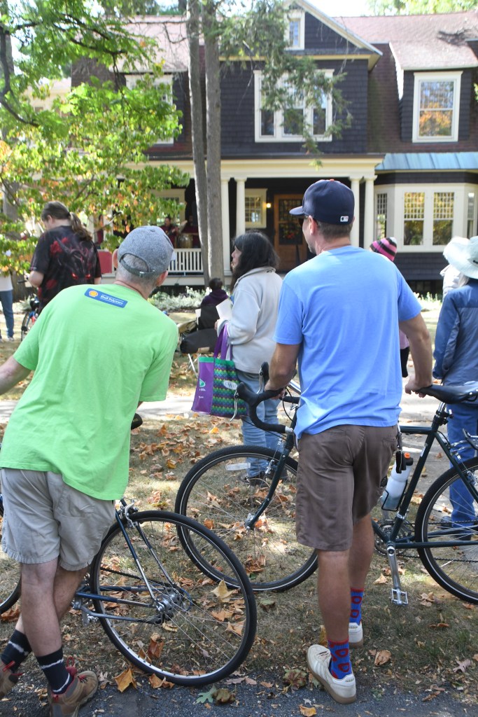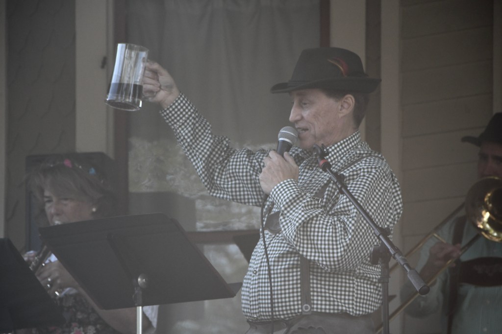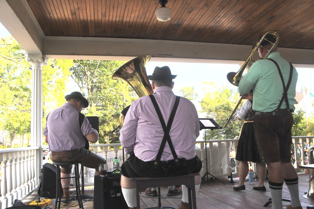 Porchfest’s silliest band, Signature Brass, brought Oktoberfest fun to the corner of Rugby and Ardsley, wearing lederhosen and dirndl and going gleefully oompah in smile-pumping party songs. Tunes felt like a toast of celebration – and not just “The Chicken Dance” – although “Ein Prost” didn’t excite the can-can dancing that leader-trumpeter-Porchfest organizer Steve Weisse hoped to ignite. They played it straight, and really well, Sousaphone player Jeremy Pearson pushing from below and Weisse carrying the melodies up top.
