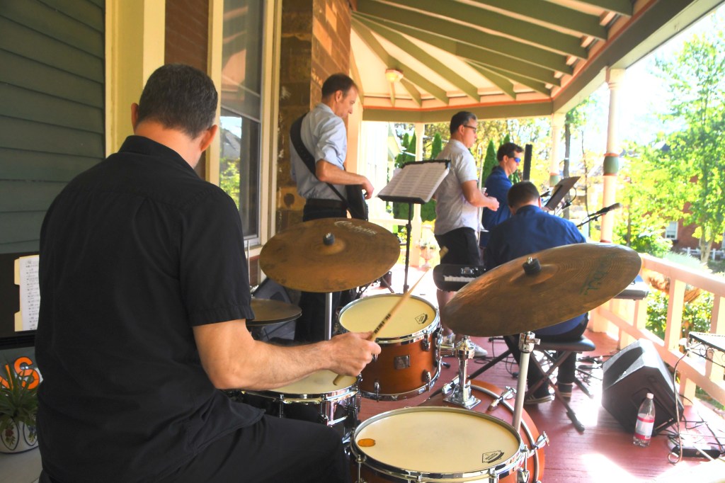 Looking down from a Wendell Ave. porch wide enough for his seven-piece jazz combo, keyboardist Kevin Carey pronounced the throng below on portable chairs or blankets to be three times larger than last year’s; the weather was equally perfect for both.