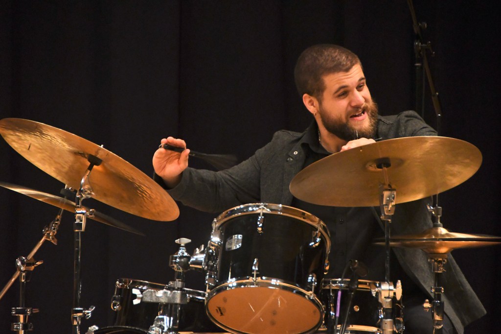 Hanahan, pianist Caelen Cardello, bassist Matt Dwonszyk and drummer Sam “Bang-Bang” Bolduc treated a happy crowd to a high-intensity two-set show, mixing mostly new tunes built on classic-tune strength with classic tunes rejuvenated by fresh energy. While most in the seats seemed a generation older than those onstage, the many SUNY Schenectady Community College music students present seemed just a scant decade younger than the band. Engaged throughout, they supplied supportive shout-outs in a feed-back loop that helped the music build moods and momentum.