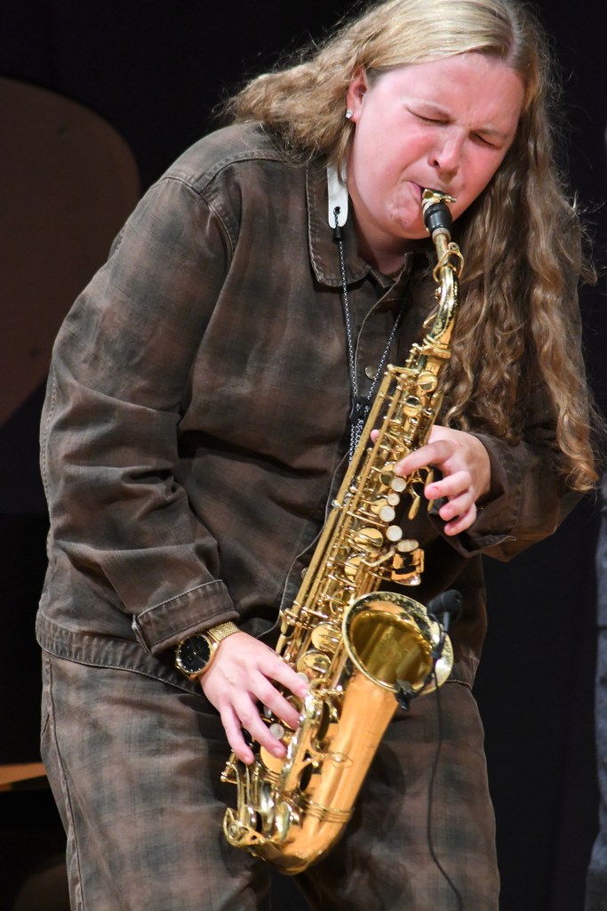 “Rivers” also made plain Hanahan’s debt to 80-something alto giant and composer Bartz, who played agelessly at SPAC’s Saratoga Jazz Festival in late June. Like Bartz, she played with a smooth tone, assertive phrasing, at speed, and used repeats to build tension.