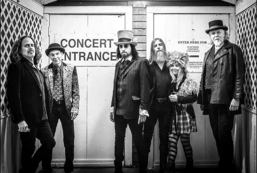 This singular band is singer/guitarist Joziah Longo (sometimes billed as Gandalf Murphy); singer, cellist, mandolinist, flautist and accordion player Tink Lloyd; guitarist and mandolin player Sharkey McEwen – all longtime members – plus bassist Bob Torsello, drummer Matthew Aborezk and RJ McCarty playing bass, keyboards and saxophone.