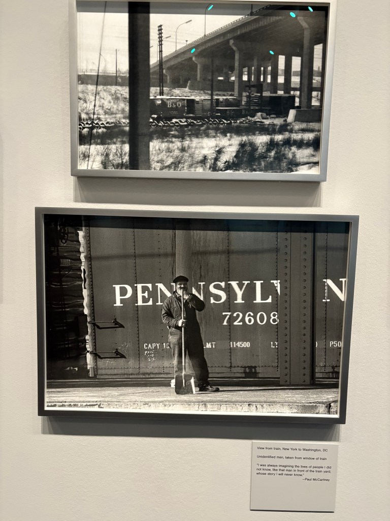 How fun to wander through gallery after gallery with McCartney’s photos on the walls, amid screens showing videos from the Ed Sullivan show, news conferences and hanging out in Florida. These seaside vacation photos are in color; everything else is in newspaper-y black and white.