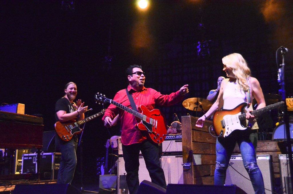 Cesar Rosas, center in red, guests with Derek Trucks, left, and Susan Tedeschi