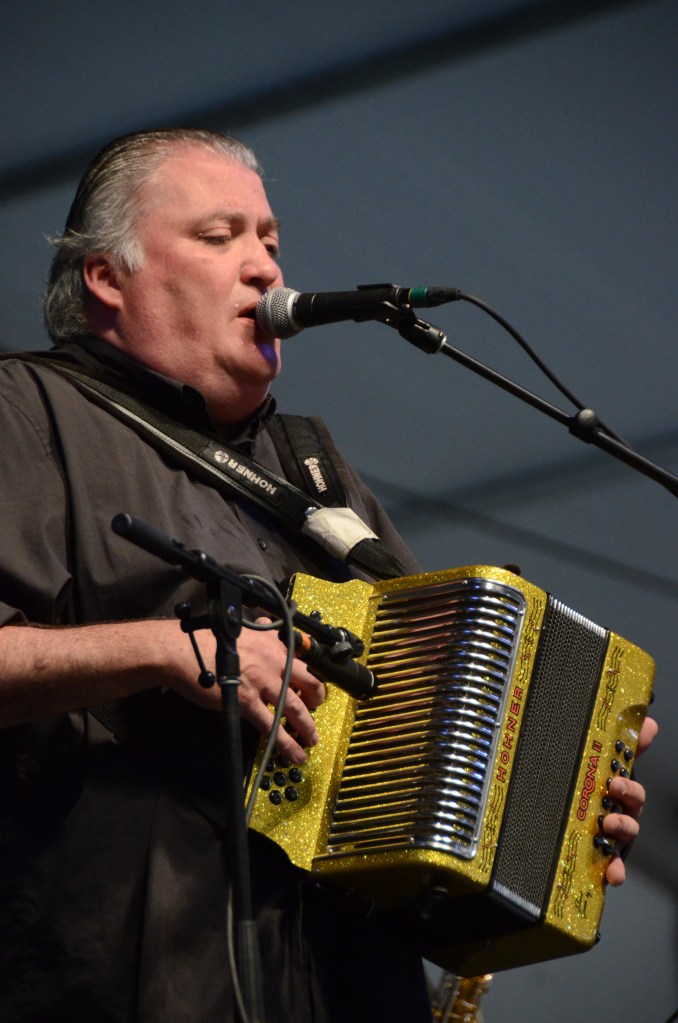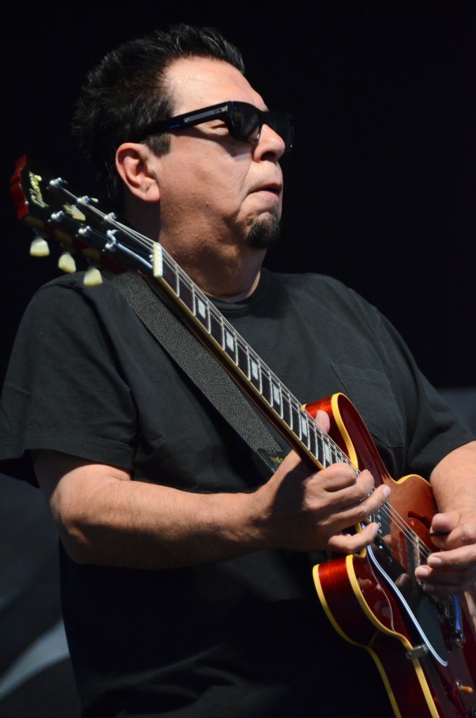 David Hidalgo, above and below, at New Orleans Jazz and Heritage Festival, April 2015. Michael Hochanadel photos