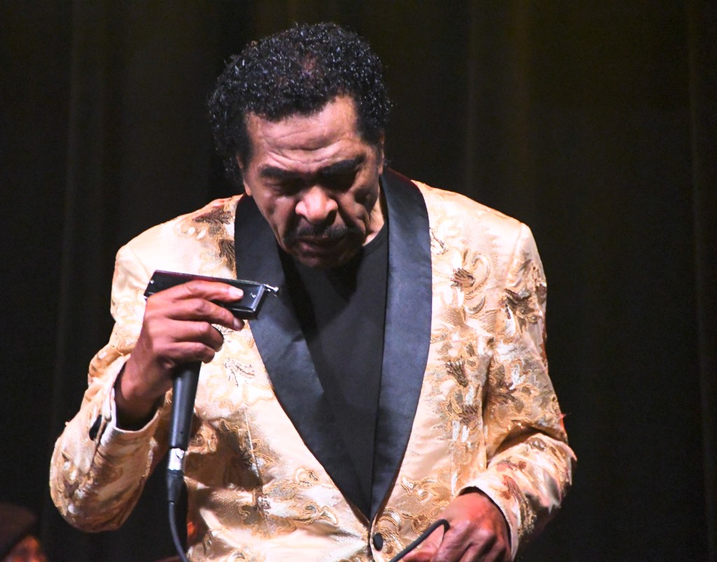 Singing strong and playing harmonica to bridge phrases and verses, he proclaimed “You So Fine,” its mildly lascivious lyric foretelling the playful sexiness spicing his blues shuffles and soul grooves. “Evil,” his next tune, overstated his intent; for him, it’s all fun; and “Big Fat Woman” described what he likes.