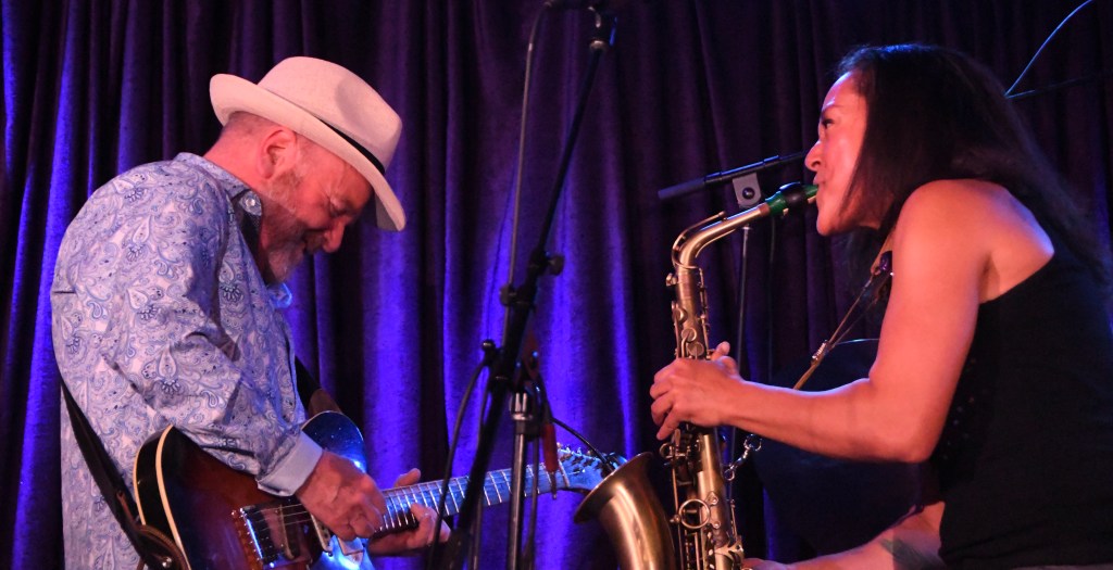 The vigorous blues shuffle “Whiskey and Women” set the pace, Collier singing first, then scrambling all over her alto sax, notes fluttering fast, before stepping back as Schermer took the lead; then they played in harmony, intuitive and tight.