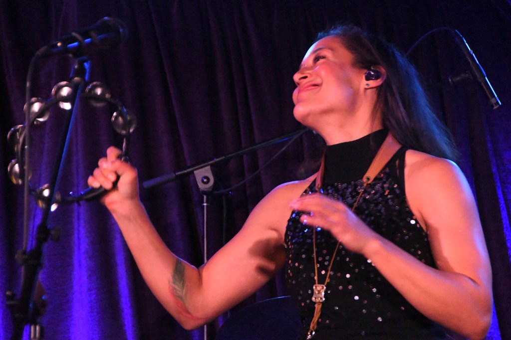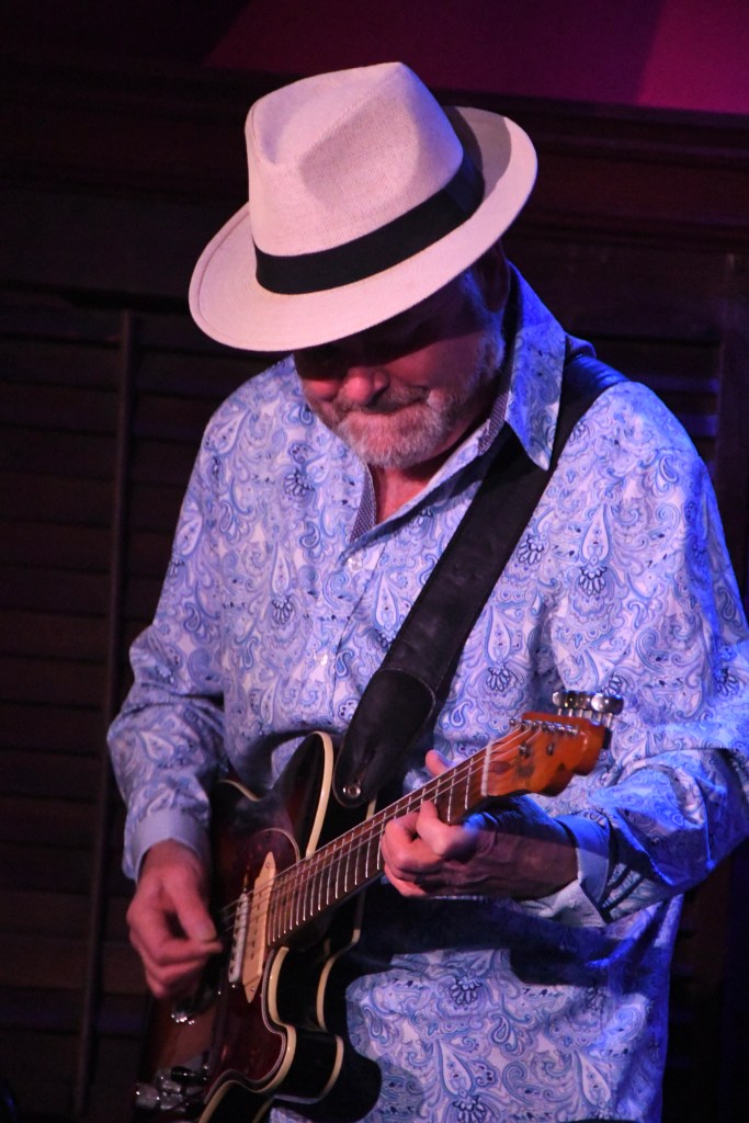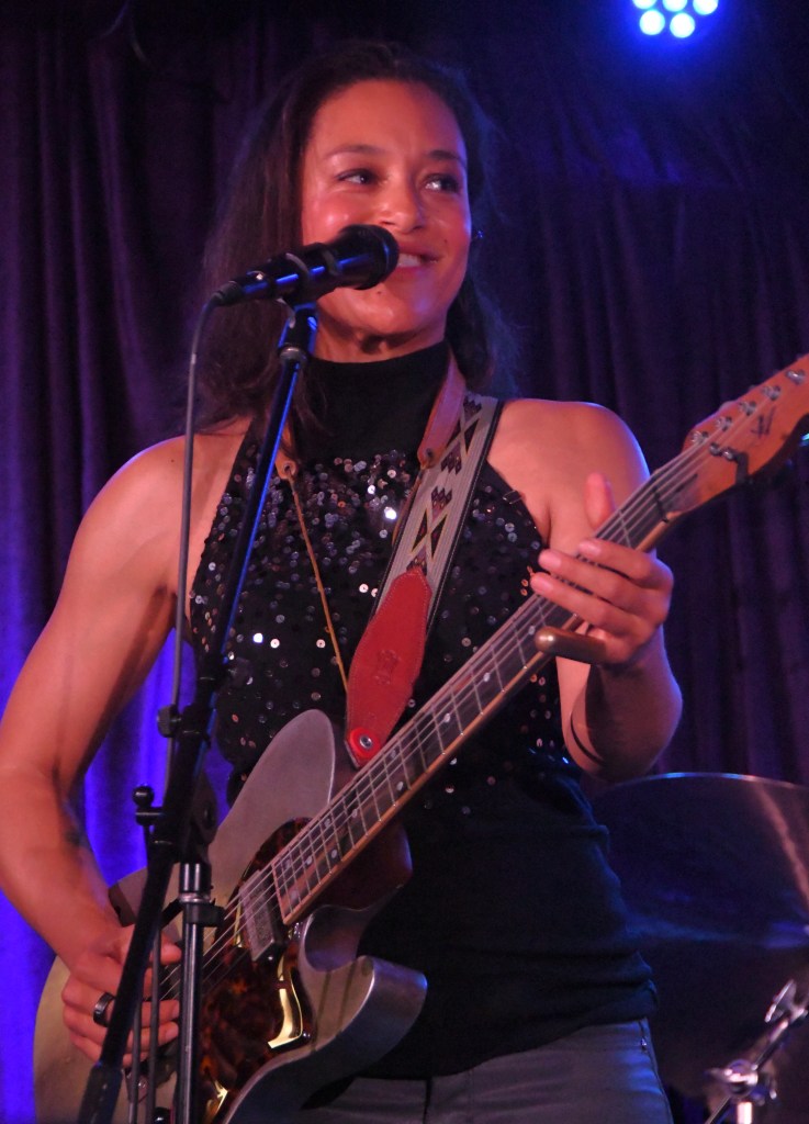 “Can’t Stand the Rain” flowed at a similar tempo, full emotional force at first, then simmering down as Guevara sang harmony with Collier. This Memphis soul classic felt conversational all the way as Collier’s alto chatted up Schermer’s guitar. She played a riff, he played back “Yeah, that’s right!” Then his new riff commented “What about this?” – and she answered.