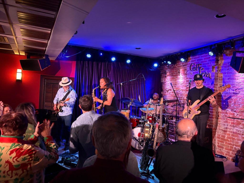 Collier said she loved playing the Caffe, seeing it filled with fans “packed in like sardines,” and explained how she found the saxophone, as a precocious introvert at age nine, to express emotion as her second voice.