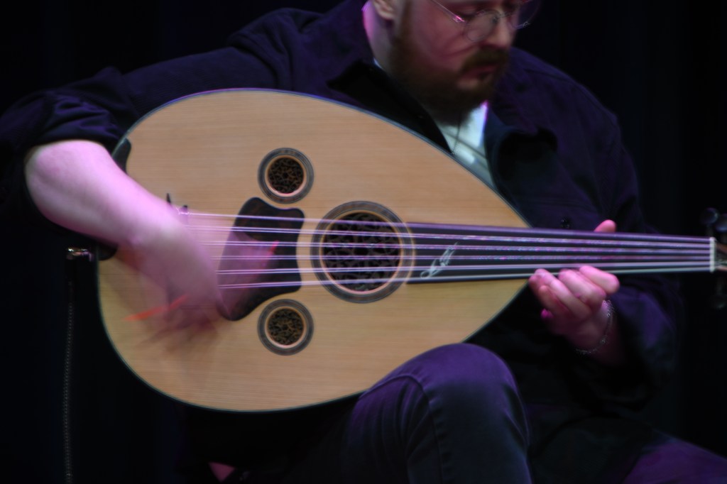 Clarity arrived quickly enough – easy for us to say, in the audience – in the abrupt cadences of “Nistar;” compact, emphatic, in crisp formation by oud and violin. A stop-and-go groove pushed the solos then settled into a calmer section until a hard stop slammed the door.