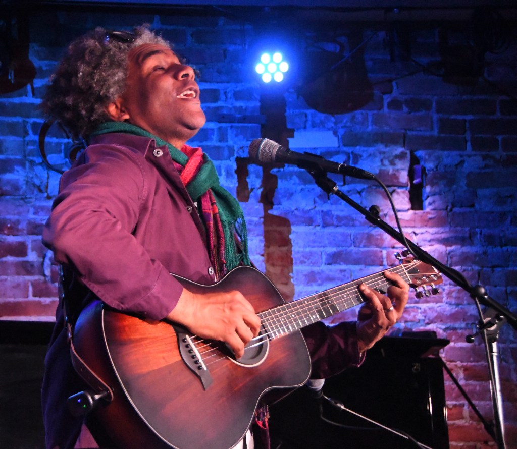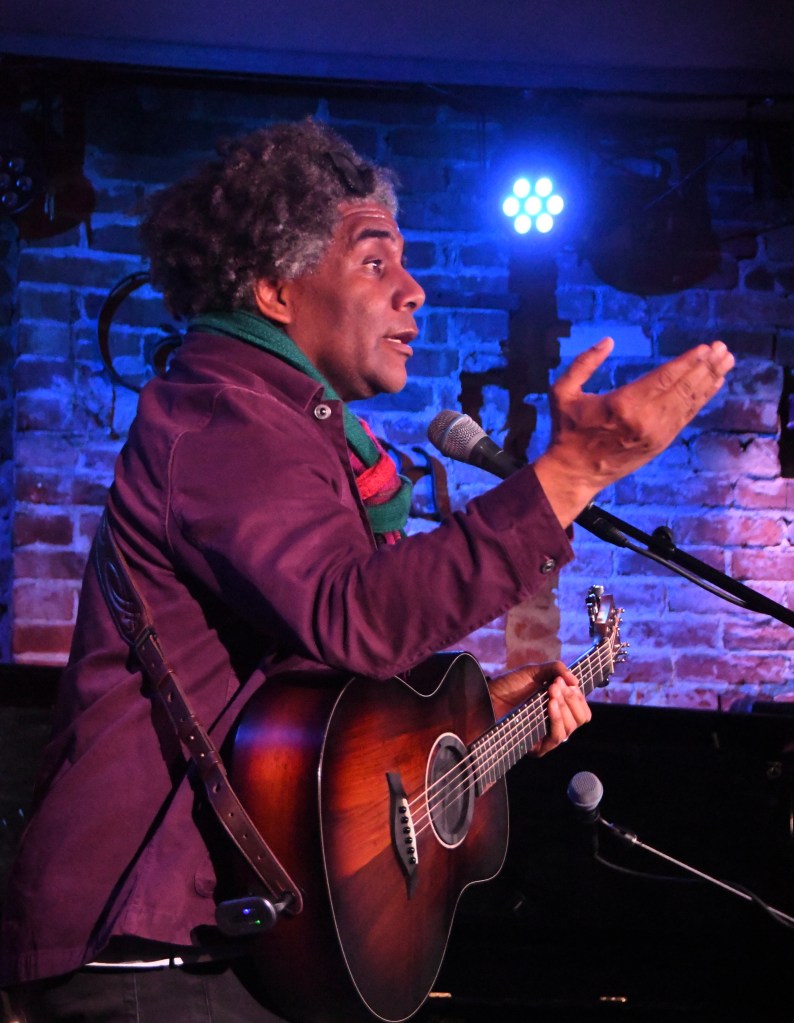 Shaped with thematic ambition, crafted with cleverness, his tunes shuffled restlessly through several episodes each and multiple moods and influences; some Funkadelic riff-crash here, a Joni Mitchell short-story next, then curly echoes of Prince-baroque, and a straight-up Black Sabbath cover over there. At times it felt like stand-up, in a soulful voice, with guitar zip. He found a rhyme for “ephemeral,” looped his falsetto into a chorus and sang over it, like those multi-Buggy Jive videos where he gangs up on a song. He revved to a staccato word-flow, asked quizzically “What Do Y’all Know about Shakespeare?” in picaresque musing about a NYC stage-play pilgrimage, a tale stuffed with inside jokes.