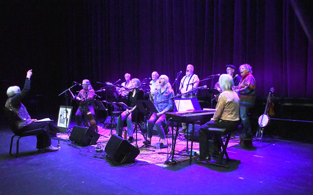 Andy Spence conducted the premiere performance of “Ms Music: Jackie Alper,” confidently keeping everyone on track in a complex presentation combining narration with music; tales and tunes spun together in a fine flow.