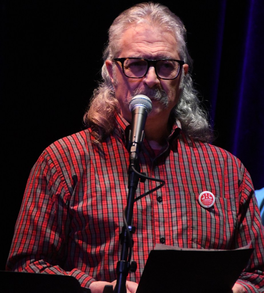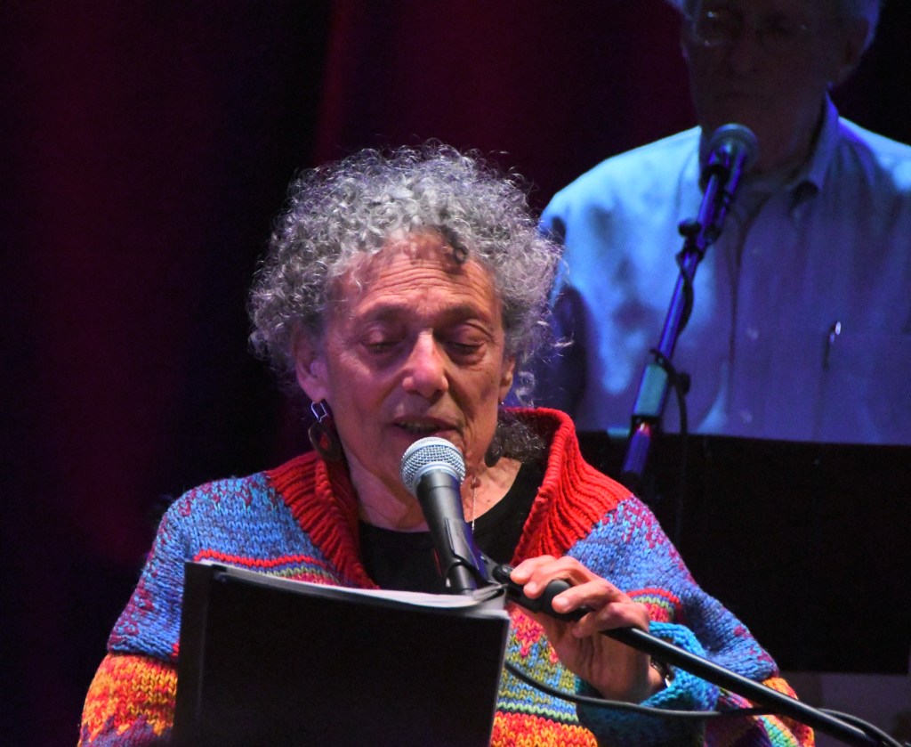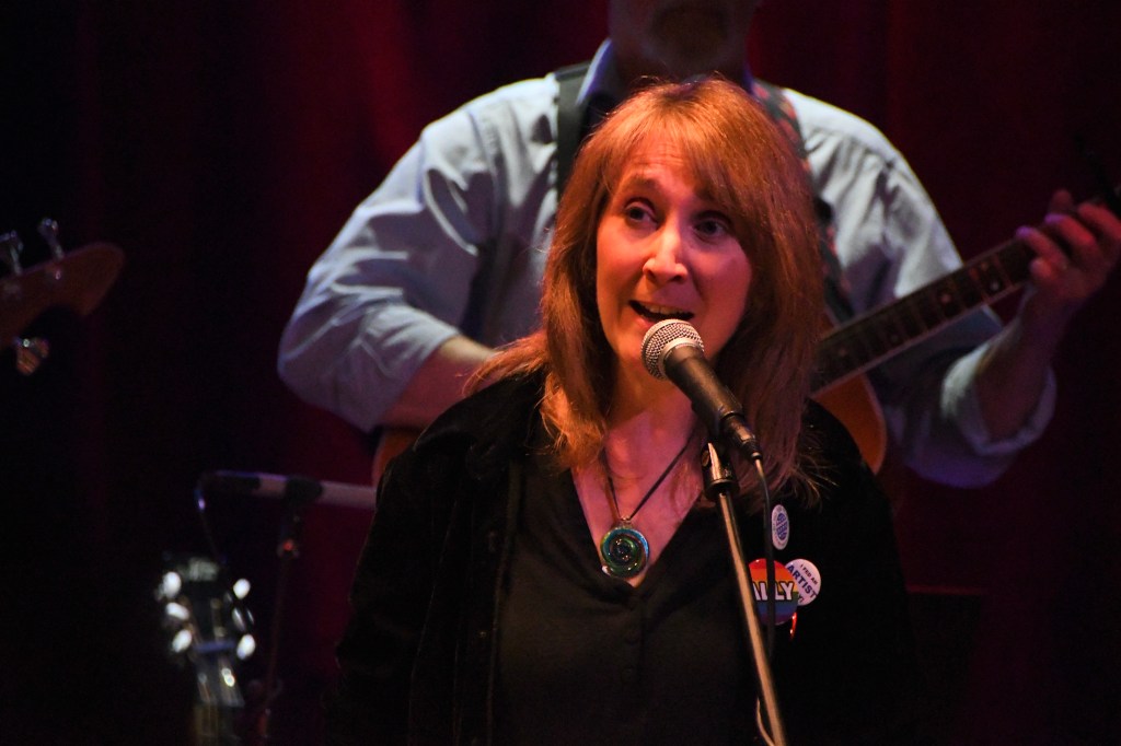 Union organizing songs hit first, hearty anthems that raised voices and fists onstage and off. This was both movement music and quite personal. A song Alper’s father Jacob Leiserowitz wrote in Yiddish highlighted immigrants’ hopes and challenges in the first set; an anti-racism blues Alper herself wrote with Nina Simone and a friend fit nicely among both protest songs and blues in the second.
