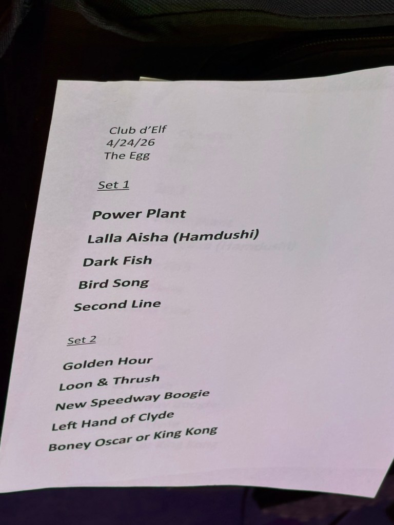 Afterward, Rivard dedicated “Bird Song” to Moroccan-born Brahim Fribgane who brought gnawa trance rhythms into Club D’Elf’s music before his death in 2024.