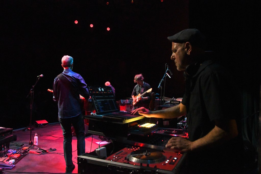 Mister Rourke, foreground, at right, works turntables with, from left, Mike Rivard, sintir, back to camera; John Medeski, keyboards, Scott Metzer, guitar. Drummer Fabio Pirozzolo is behind Rourke